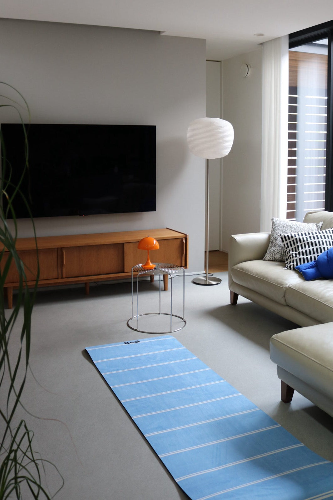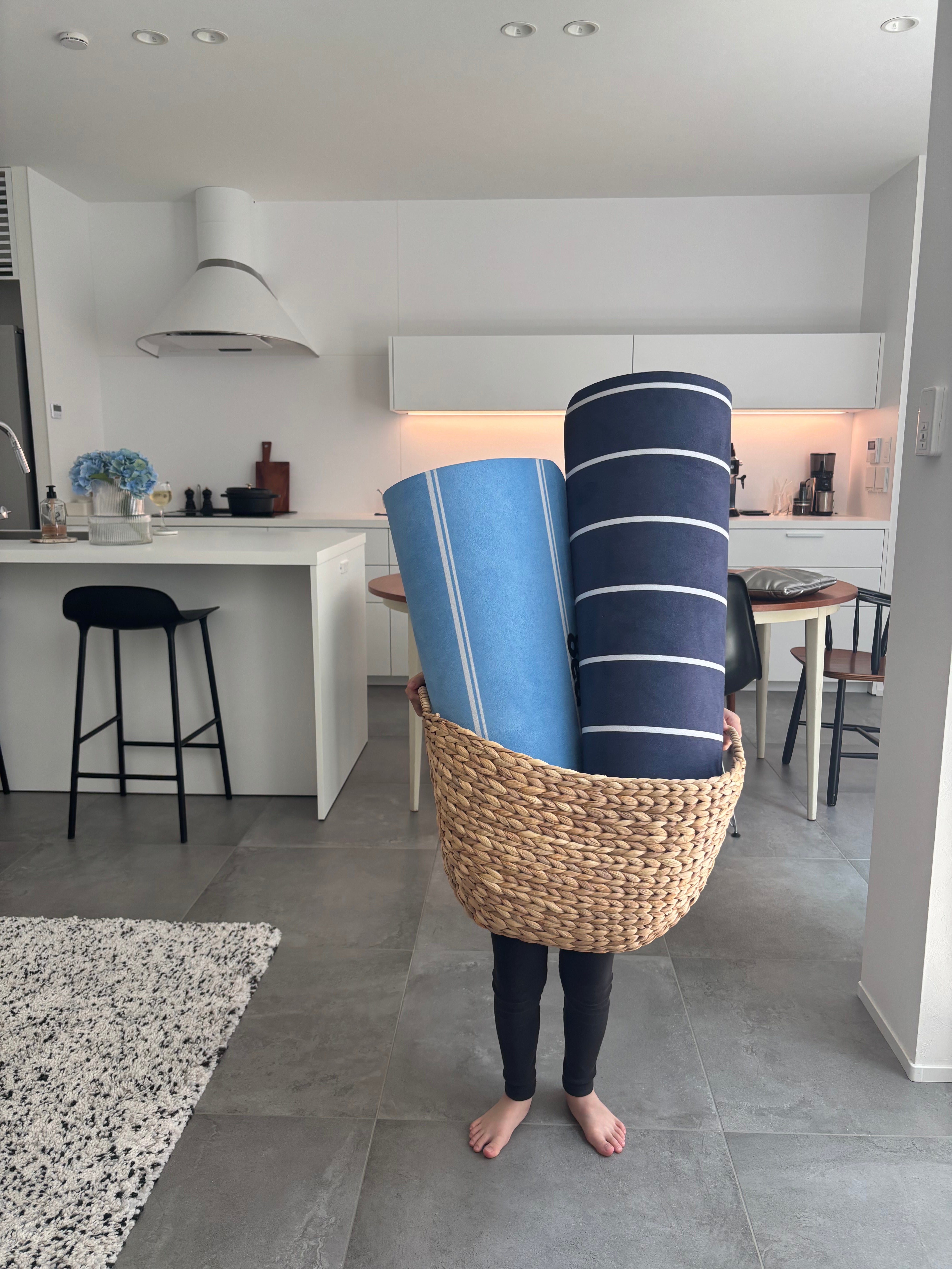 「片付けないからこそ、続けられるストレッチマット」。毎日の健康習慣を無理なく続けるために、敷きっぱなしでもインテリアに馴染むデザインに仕上げました。