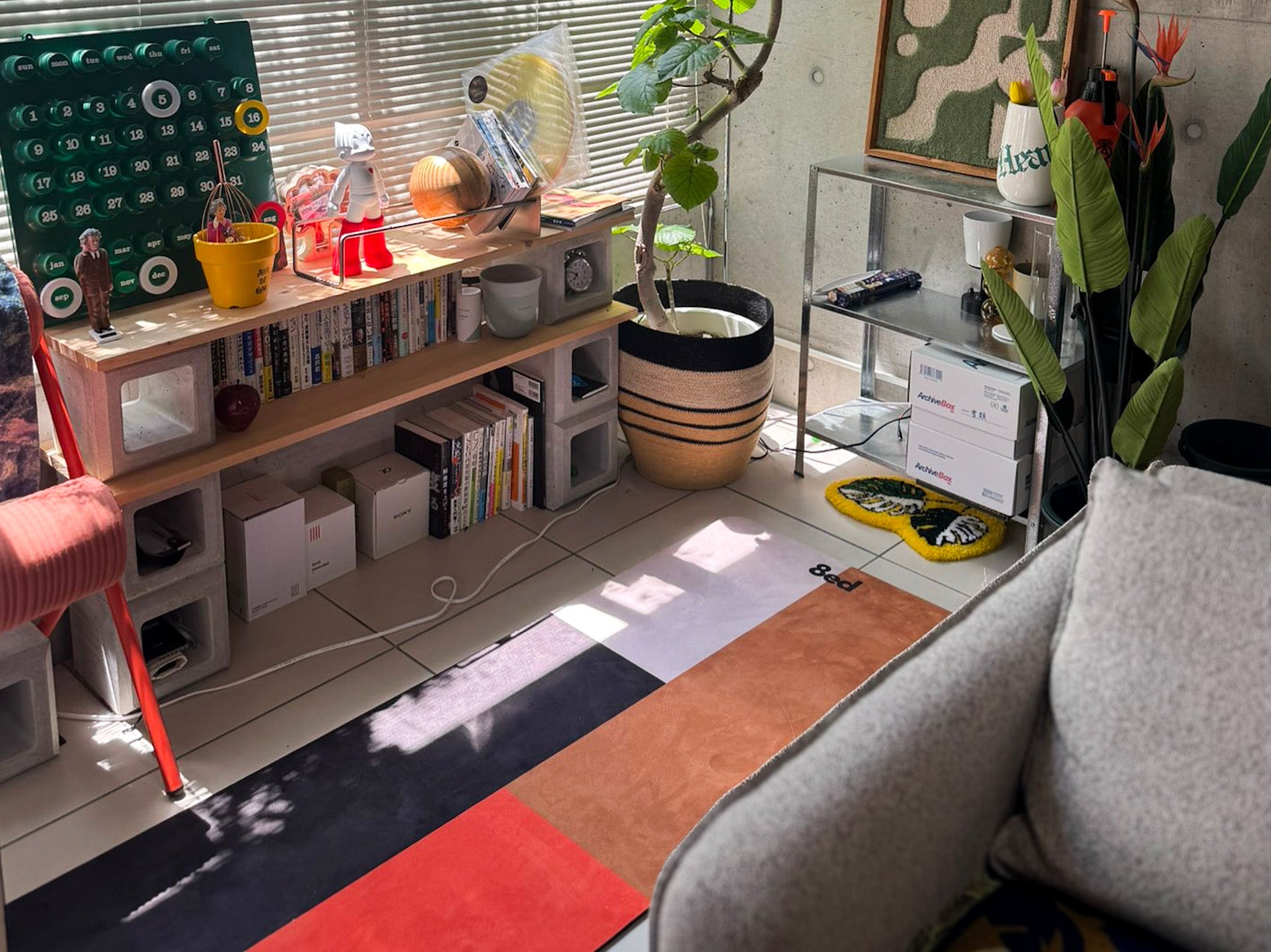 「片付けないからこそ、続けられるストレッチマット」。毎日の健康習慣を無理なく続けるために、敷きっぱなしでもインテリアに馴染むデザインに仕上げました。