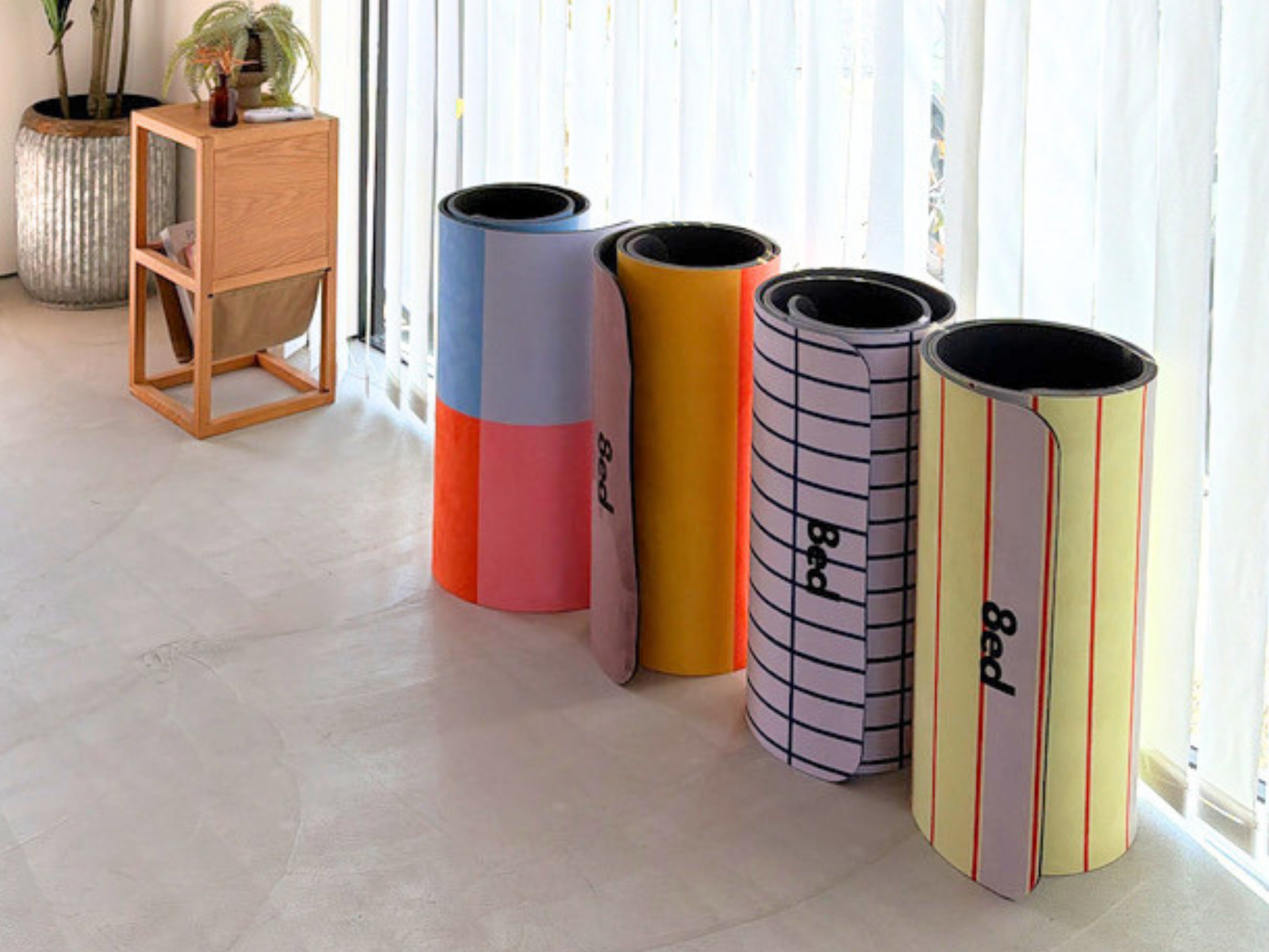床に敷きっぱなしでも空間に自然に馴染みながら、日々のストレッチや床で過ごす時間にちょうどよいクッション性になるよう設計しています。